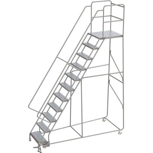 Tri-Arc Rolling Ladder, 11 Step, Aluminum, Perforated, Lock Step, 28"D Top Step, 24"W Step
