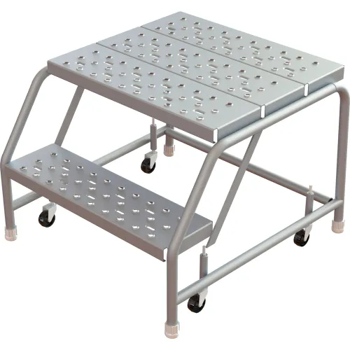 Tri-Arc Rolling Ladder, 2 Step, Aluminum, Perforated, 21" Deep Top Step, No Handrails, 24"W Step