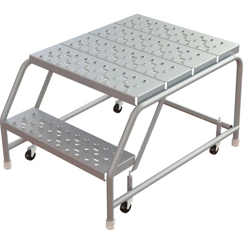 Tri-Arc Rolling Ladder, 2 Step, Aluminum, Perforated, 28" Deep Top Step, No Handrails, 24"W Step