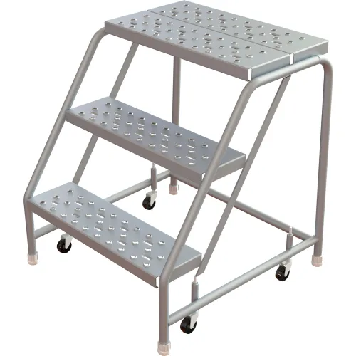 Tri-Arc Rolling Ladder, 3 Step, Aluminum, Perforated, 14" Deep Top Step, No Handrails, 24"W Step