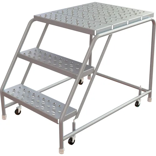 Tri-Arc Rolling Ladder, 3 Step, Aluminum, Perforated, 28" Deep Top Step, No Handrails, 24"W Step