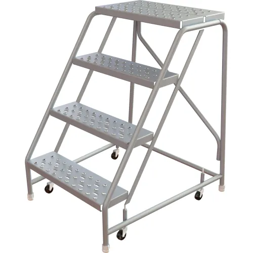 Tri-Arc Rolling Ladder, 4 Step, Aluminum, Perforated, 14" Deep Top Step, No Handrails, 24"W Step