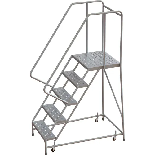 Tri-Arc Rolling Ladder, 5 Step, Aluminum, Perforated, 21" Deep Top Step, With Handrails, 24"W Step