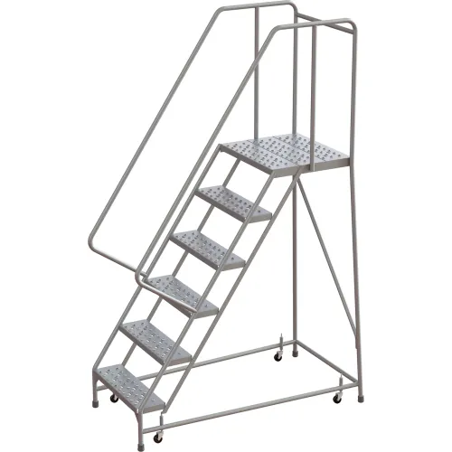 Tri-Arc Rolling Ladder, 6 Step, Aluminum, Perforated, 21" Deep Top Step, With Handrails, 24"W Step