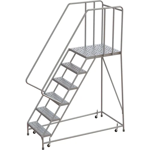 Tri-Arc Rolling Ladder, 6 Step, Aluminum, Perforated, 28" Deep Top Step, With Handrails, 24"W Step
