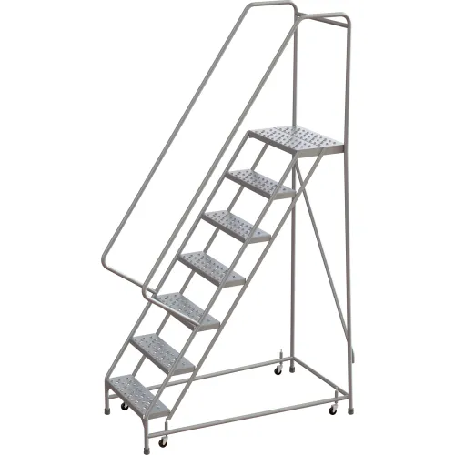 Tri-Arc Rolling Ladder, 7 Step, Aluminum, Perforated, 14" Deep Top Step, With Handrails, 24"W Step