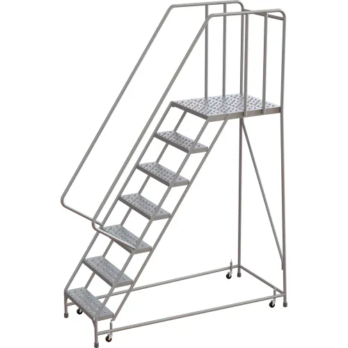 Tri-Arc Rolling Ladder, 7 Step, Aluminum, Perforated, 28" Deep Top Step, With Handrails, 24"W Step
