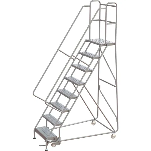 Tri-Arc Rolling Ladder, 8 Step, Aluminum, Perforated, Lock Step, 14"D Top Step, 24"W Step