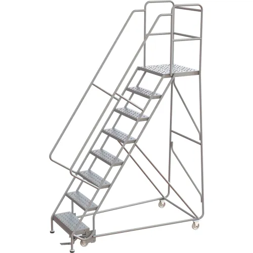 Tri-Arc Rolling Ladder, 8 Step, Aluminum, Perforated, Lock Step, 21"D Top Step, 24"W Step