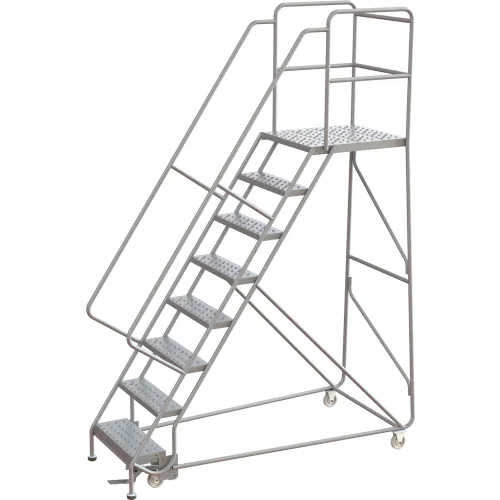 Tri-Arc Rolling Ladder, 8 Step, Aluminum, Perforated, Lock Step, 28"D Top Step, 24"W Step