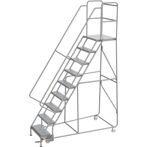 Tri-Arc Rolling Ladder, 9 Step, Aluminum, Perforated, Lock Step, 21"D Top Step, 24"W Step