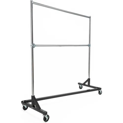 Global Industrial Rolling Z-Rack Garment Storage Rack, Middle Bar,63"L x 24"W x 68"H,Black Base