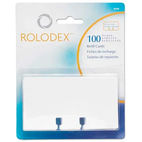 Rolodex Plain Unruled Refill Card, 2 1/4 x 4, White, 100 Cards/Pack