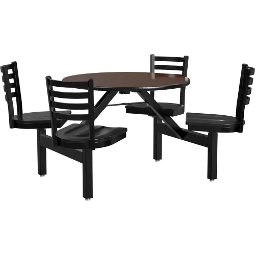 Global Industrial Round Cafeteria Table with Black Swivel Stools, 36" Dia., Montana Walnut Top