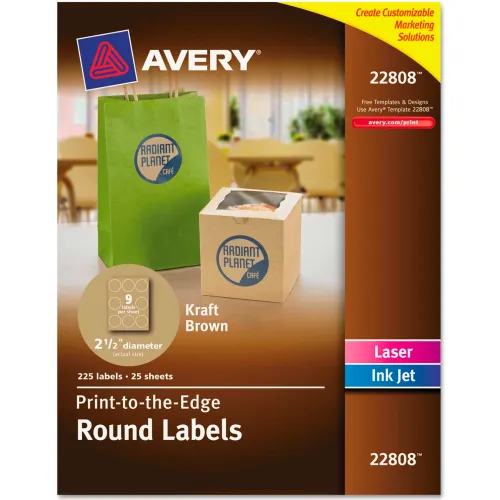 Avery® Round Easy Peel Labels, 2-1/2" Dia., Brown Kraft, 225/Pk