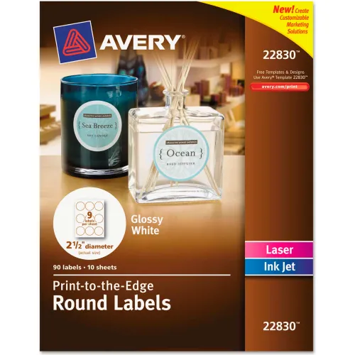 Avery® Round Easy Peel Labels, 2-1/2" Dia., Glossy, White, 90/Pack