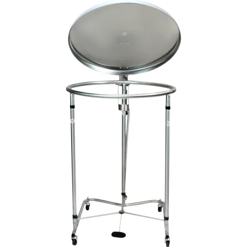 Blickman Round Hamper, Stainless Steel, 24" Dia, 35"H, 2" Casters, Foot Operated w/ Pneumatic Top