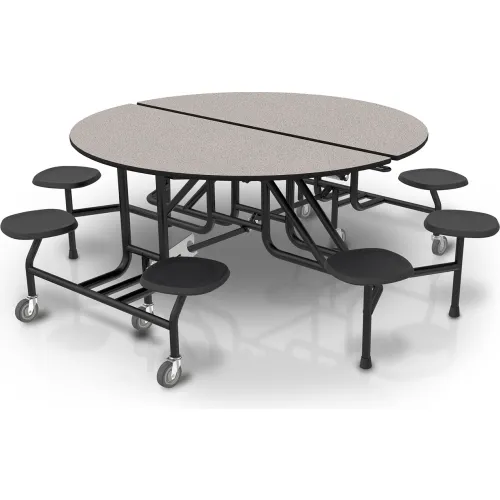 Global Industrial Round Mobile Cafeteria Table with Stools, 60" Dia. x 29"H, Gray Glace