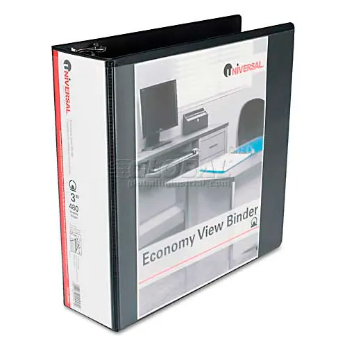 Universal® Round Ring Economy Vinyl View Binder, 3" Capacity, Black