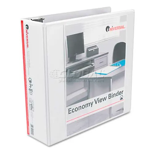 Universal® Round Ring Economy Vinyl View Binder, 3" Capacity, White