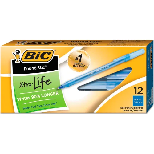 BIC® Round Stic Xtra Life Ballpoint Pen, Stick, Medium 1 mm, Blue Ink, Dozen