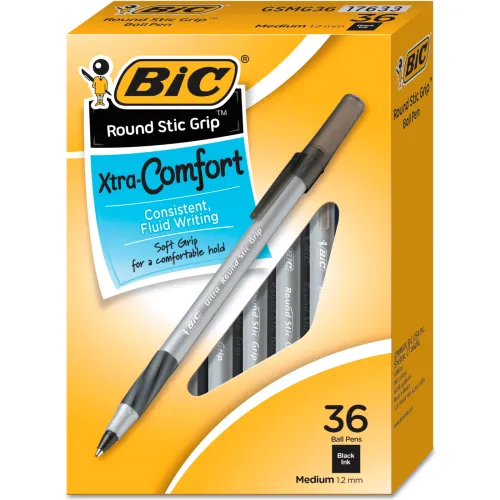 BIC® Round Stic Grip Xtra Comfort Ballpoint Pen, Black, 1.2mm, Medium, 36/Pack