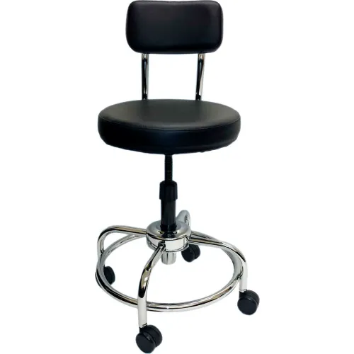 ShopSol Round Vinyl Lab Stool with Backrest - Black