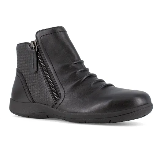 Rockport Works Ruched Bootie, Full Grain Leather, Black, 5M