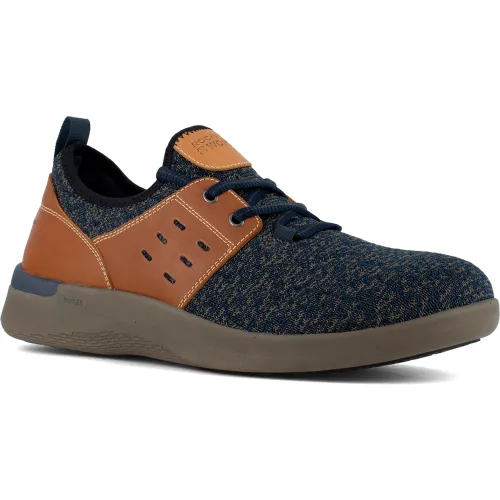 Rockport Works RK4691 Two Eye Tie Work Sneaker, Breathable Knit textile & Leather, Blue & Tan, 11M
