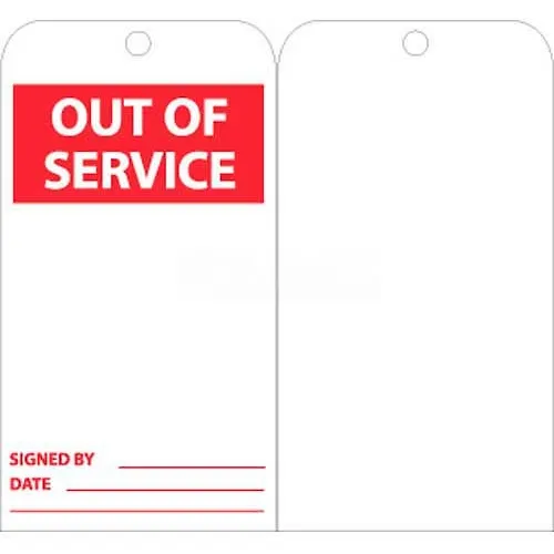 NMC RPT176 Tags, Out Of Service, 6" X 3", White/Red, 25/Pk