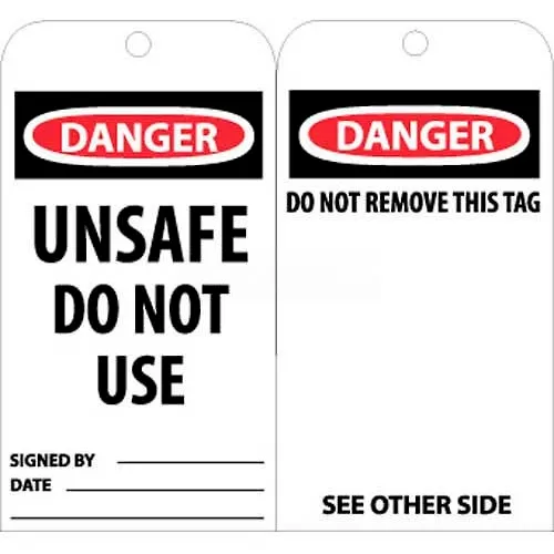 NMC RPT34 Tags, Danger Unsafe Do Not Use Operate, 6" X 3", White/Red/Black, 25/Pk