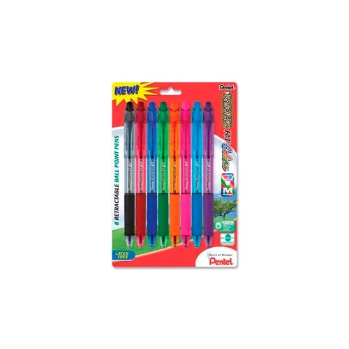 Pentel® RSVP Ballpoint Retractable Pen, Refillable, Medium, Assorted Ink, 8/Pack