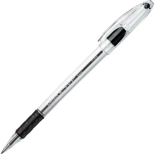 Pentel® RSVP Ballpoint Stick Pen, Fine, Clear Barrel, Black Ink, Dozen