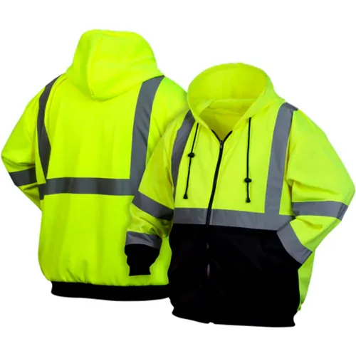 Pyramex® RSZH32 Long Sleeve Zipper Sweatshirt with Black Bottom , Class 3, 4XL, Hi-Vis Lime