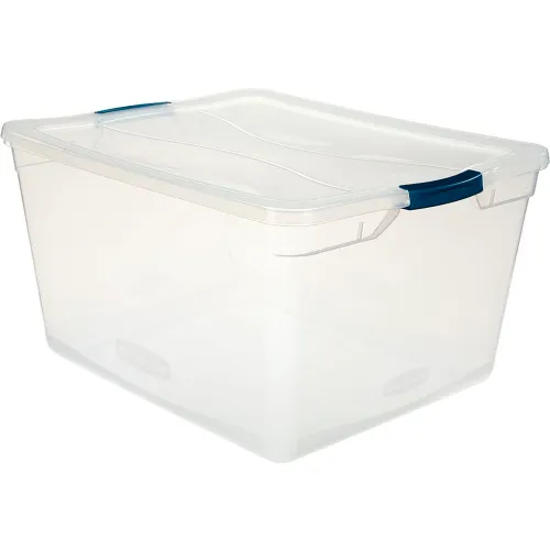 Rubbermaid Cleverstore Latching Storage Tote w/ Lid, 23-1/2"Lx18-5/8"Wx12-1/4"H, Clear, Polyethylene - Pkg Qty 4