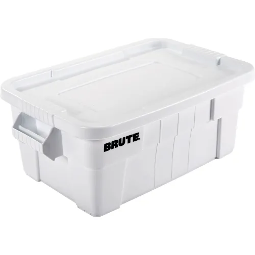 Rubbermaid Brute Tote with Lid, 27-1/2"L x 16-3/4"W x 10-3/4"H, White, Polyethylene - Pkg Qty 6