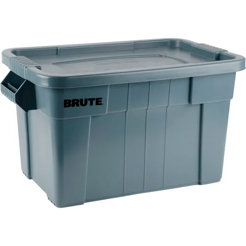 Rubbermaid 20 Gallon Brute Tote with Lid, 27-7/8"L x 17-3/8"W x 15-1/8"H, Gray, Polyethylene - Pkg Qty 6