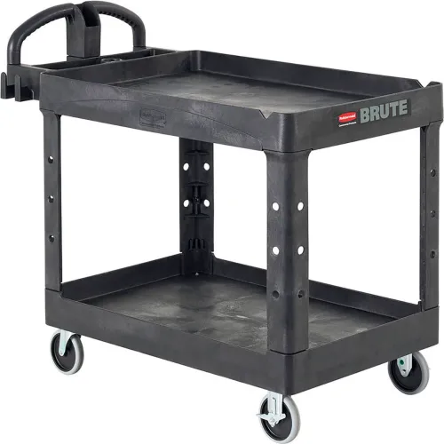 Rubbermaid® Brute Heavy Duty Ergo Handle Utility Cart, Lipped Shelf, Black