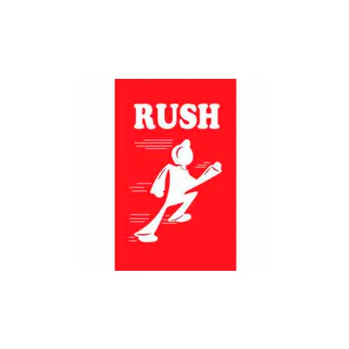 Paper Labels w/ "Rush" Print, 3"L x 2"W, White & Red, Roll of 500