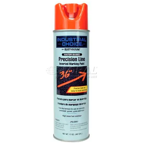 Rust-Oleum M1800 Water-Based Precision-Line Inverted Marking Paint Aerosol, Alert Orange - Pkg Qty 12