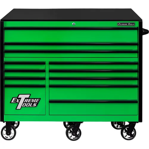 Extreme Tools RX 12 Drawer Roller Cabinet, 55"W x 25"D x H"47, Green w/Black Handles & Trim