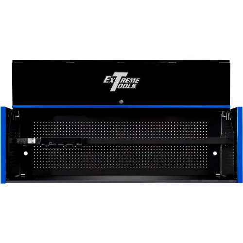 Extreme Tools RX Power Workstation Hutch, 72"W x 25"D x 22-1/4"H, Black with Blue Handle & Trim