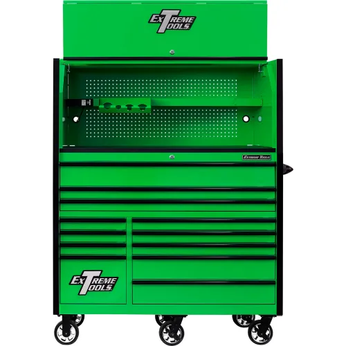 Extreme Tools RX Pro Power Workstation Hutch & Roller Cabinet, 55"W x 25"D, Green w/ Black Dr Pulls