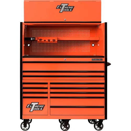 Extreme Tools RX Pro Power Workstation Hutch & Roller Cabinet, 55"W x 25"D, Orange w/Black Dr Pulls