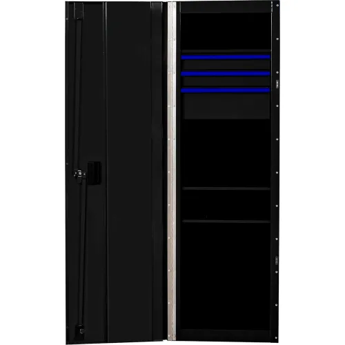 Extreme Tools RX Side Locker, 3 Drawers & 4 Shelves, 24"W x 30"D x 60-7/8"H, Black with Blue Handles