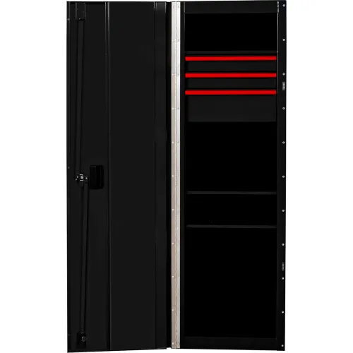 Extreme Tools RX Side Locker, 3 Drawers & 4 Shelves, 24"W x 30"D x 60-7/8"H, Black with Red Handles