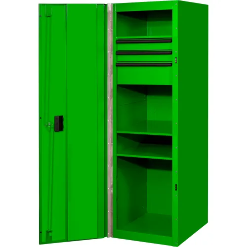 Extreme Tools RX Side Locker, 3 Drawers & 4 Shelves, 24"W x 30"D x 60-7/8"H, Green w/ Black Handles