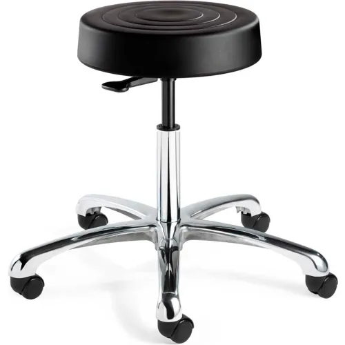 Bevco S3050-BLK ErgoLux Backless Stool, Black Polyurethane Seat, Aluminum Base