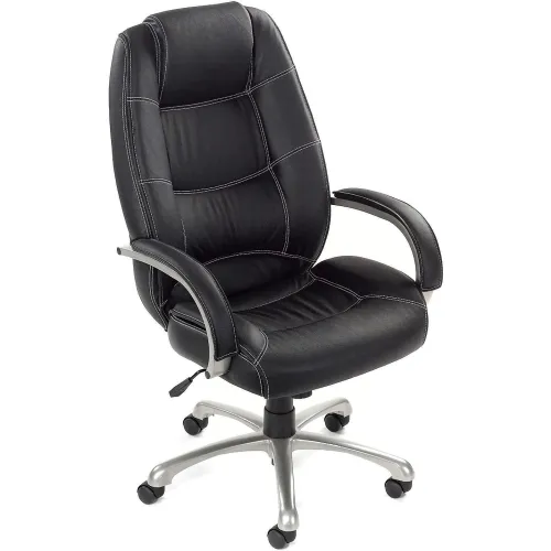 Interion® Executive Chair With High Back & Fixed Arms, Bonded Leather/Saddle Stitching, Black