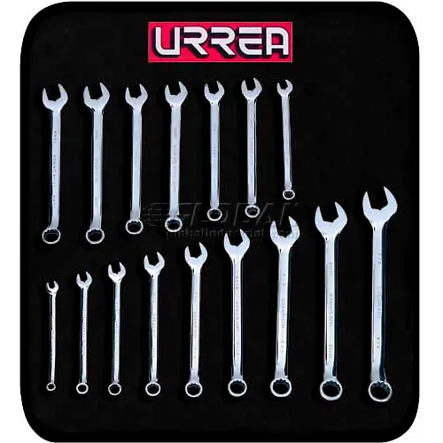 Urrea SAE & Metric Combination Wrench Set, 1200FC, 6 & 12 Pt, 1/4-3/4"/8-15mm Opening Sizes, 16 Pcs